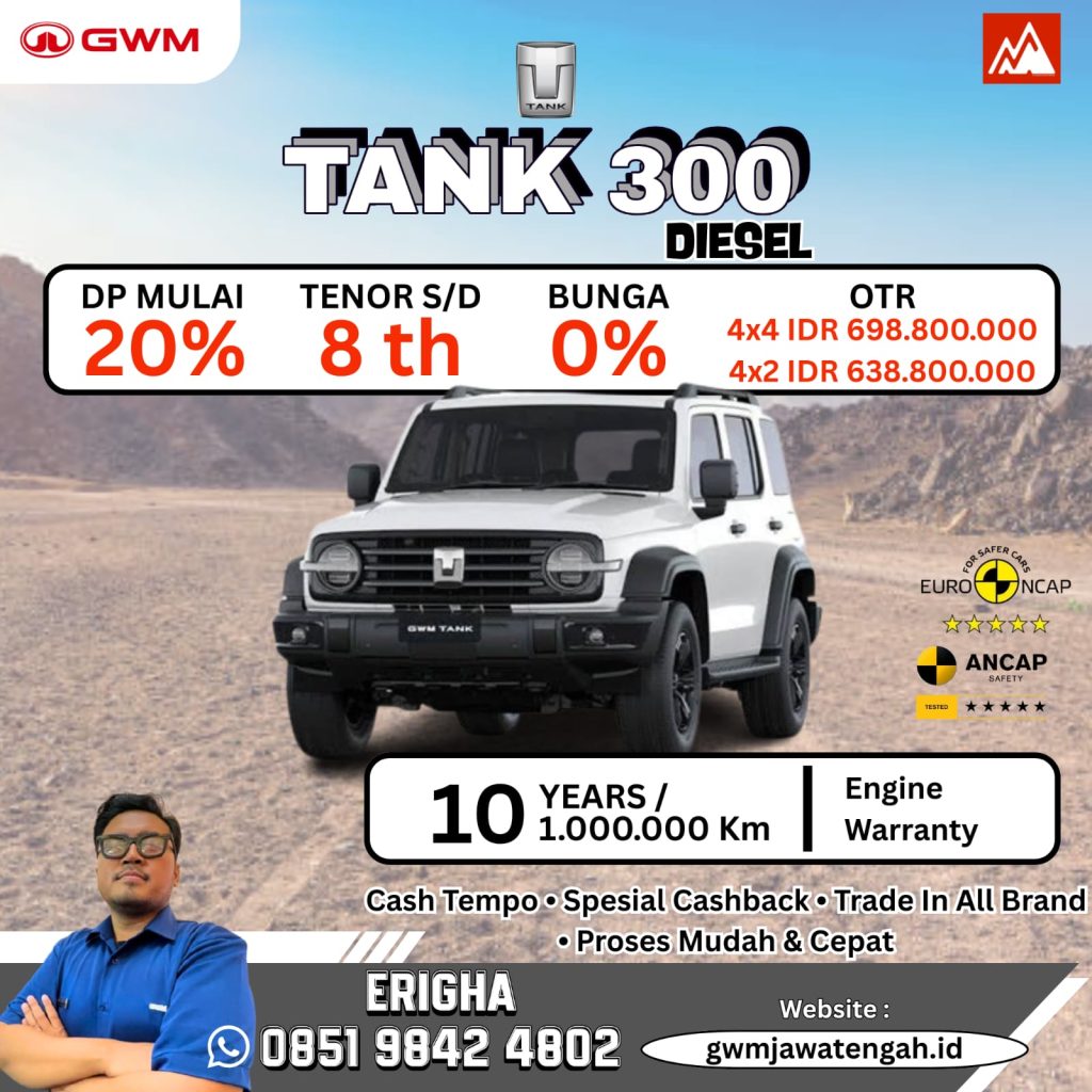 Promo Gwm Tank 300 Diesel Terbaru 2025 Semarang – Info Promo Mobil GWM Tank 300 Diesel Special Deal Bulan ini dengan Menghadirkan Berbagai Macam Promo dan Diskon Menarik Khusus Pembelian Mobil GWM Tank 300 Diesel.